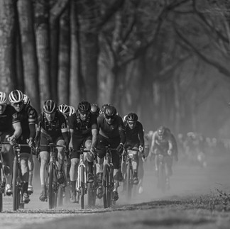 Vooral de zwart-wit foto van het aanstormende peloton in die imposante dreef vind ik heel indrukwekkend.