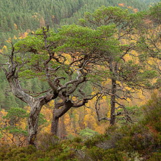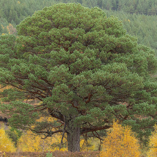Het opzet was bomen te fotograferen in deze herfstsetting. En bomen zijn er niet zoveel in Schotland maar deze is de meest iconische en was mijn main target. Pinus sylvestris of Schotse den of Caledonian pine zoals ze hem daar noemen. Groeit op een dunne bodemlaag in zure en voedeselarme grond. Er zijn in Schotland een zevental locaties waar de boom floreert en daar zijn actieve beschermingsmaatregelen van kracht en probeert men het areaal uit te breiden; want dat is het grote probleem; de jonge scheuten en zaailingen worden allemaal kaalgevreten door de edelherten; de populatie herten wordt daar onder controle gehouden en het wordt hun ook moeilijk gemaakt der in te komen.