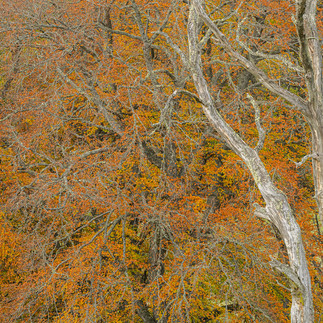 Eerst een beuk met mooie kleurschakeringen. De manier waarop de takken zich in het frame verdelen en hoe ze onze blik naar de hoeken bewegen maakt het aangenaam.