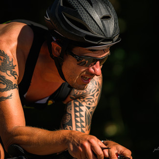 De weersomstandigheden waren zoals we ze nu al geruime tijd kennen, zonnig en warm en droog. De bedoeling was niet om een fotoverslag te maken; ik zoek liever de emoties die de sportbeoefening meebrengen. Sterk zonlicht helpt niet en daarom heb ik om de beelden te maken de schaduw opgezocht; die is langs het loop- en fietsparcours echter zeldzaam (het zwemmen was verboden omdat er blauwalg was vastgesteld in het Netekanaal).